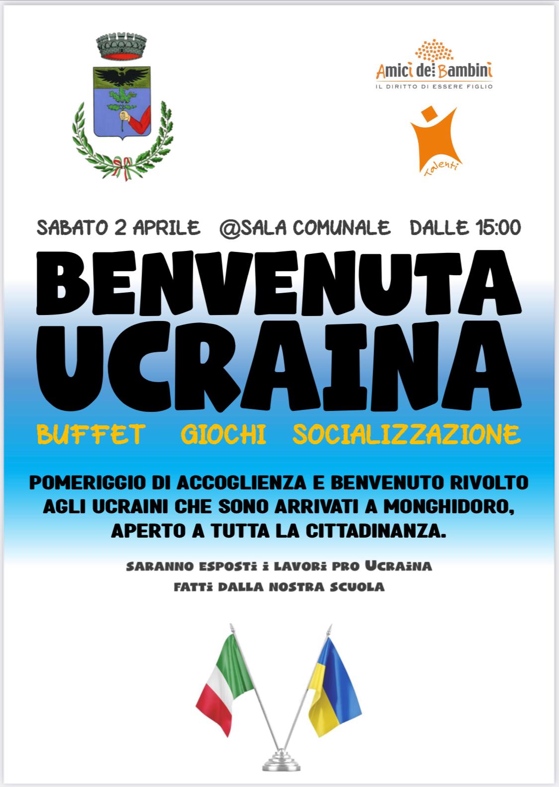 Sabato 2 aprile alle ore 15:00 presso la Sala Comunale si terrà un pomeriggio di accoglienza e benvenuto rivolto agli ucraini che sono arrivati nel nostro comune.
