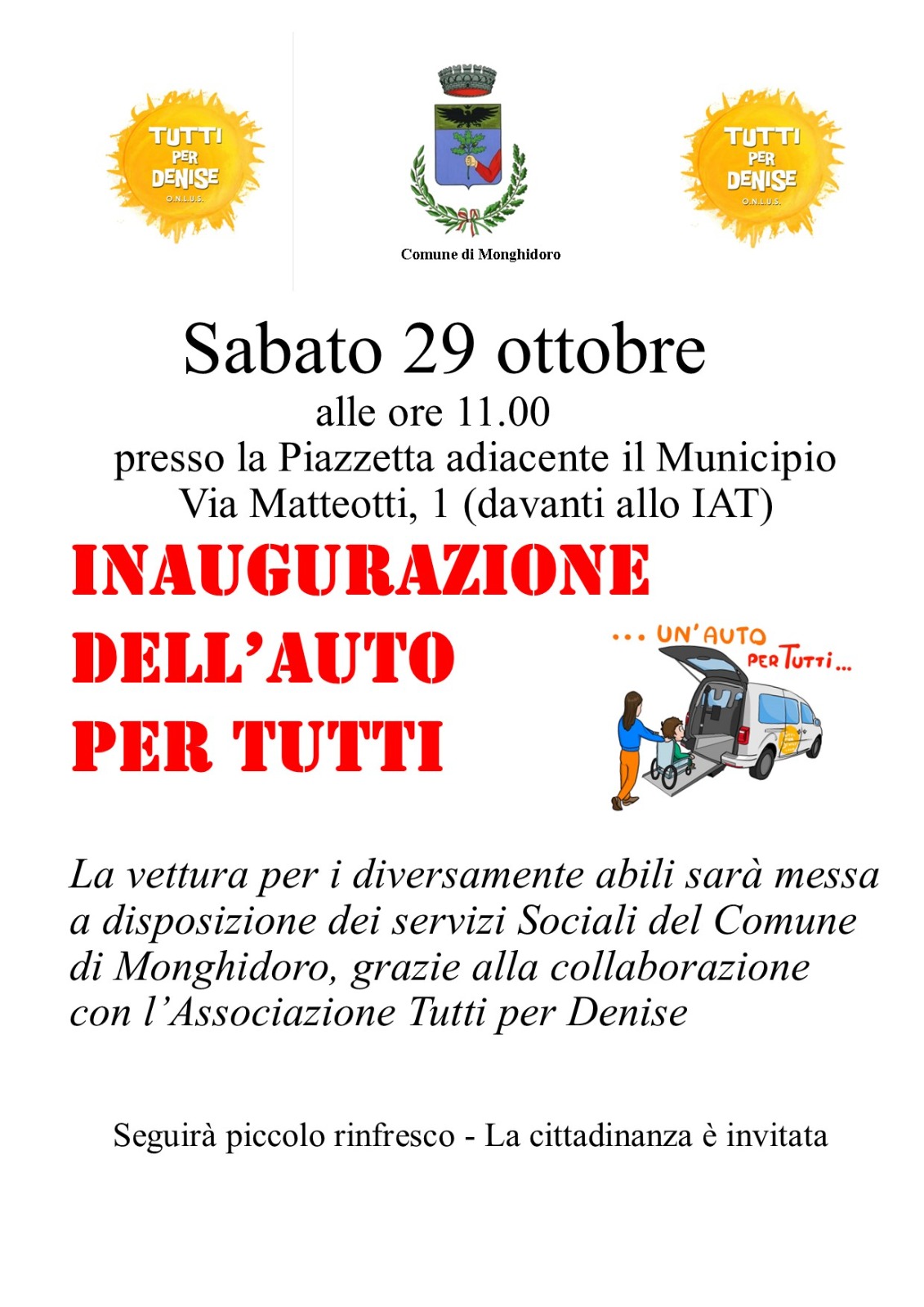 La vettura per i diversamente abili sarà messa a disposizione dei servizi Sociali del Comune di Monghidoro, grazie alla collaborazione con l’Associazione Tutti per Denise.