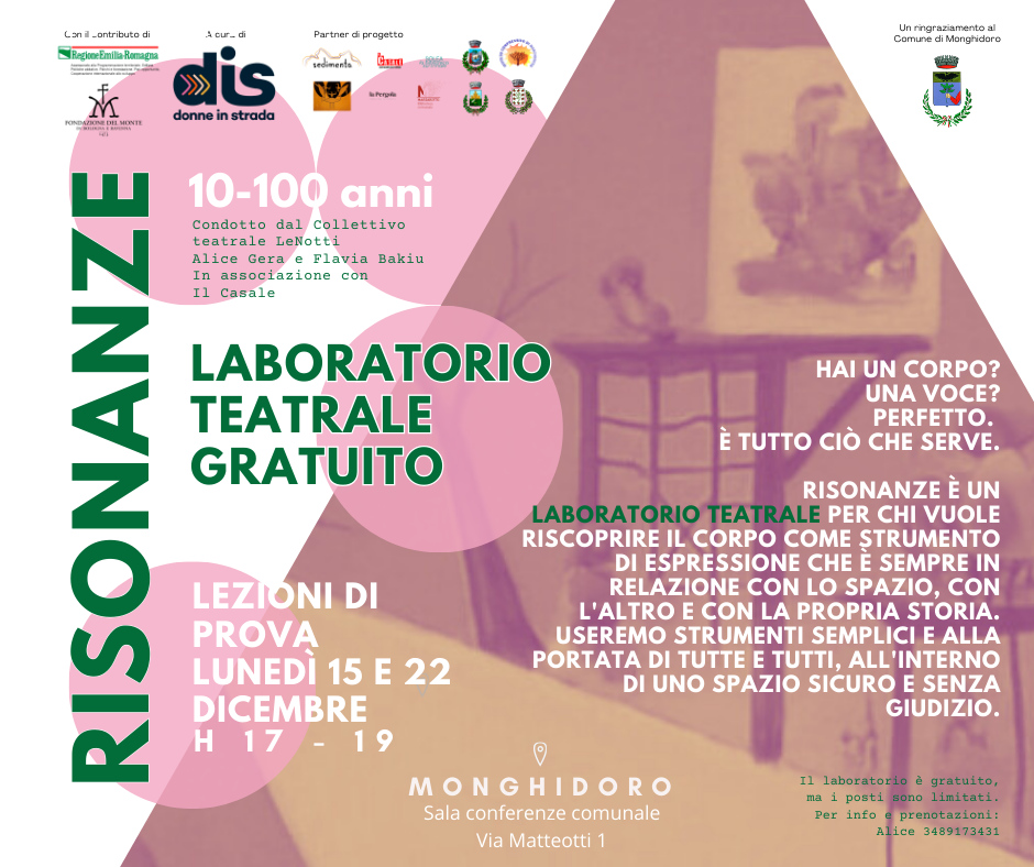 🎭RISONANZE🎭 È un laboratorio teatrale sul corpo come strumento di espressione. È pensato per chi ha voglia di cambiare pelle, di muovere e riscoprire un corpo che é sempre in relazione con lo spazio, con l' Altro e con la propria storia.